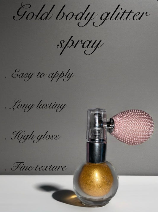 Gold Body Glitter Spray – Fine Shimmer Powder in Pink Puff Atomizer Bottle
